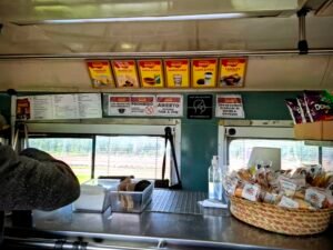 Ir a comprar algo en la Cafetería hace del trayecto mas ameno y con la panza llena. No muy recomendable los burritos pequeños, de mal sabor y caros que calientan en el micro. O el paquete del café y una cancha de dulce casi son 100 pesos. Por ello mejor llevarse unas aguas y lunch desde tu casa es mejor para viajar, o comprar unas gorditas de maíz son la mejor opción de comida en la estación Divisadero; ubicado poco mas de la mitad del paseo, hechas a mano por las tarahumaras, mas su respectivo guiso casero.