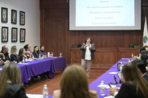 Durante su ponencia, destacó la importancia de avanzar en la prevención y atención a la violencia hacia las mujeres en los espacios universitarios. “La idea es reflexionar colectivamente sobre estrategias, pero también, avanzar en la perspectiva de género en la convivencia universitaria”, mencionó Cárdenas Méndez.