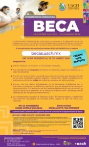 El proceso de solicitud se llevará a cabo exclusivamente en la página: http://becas.uach.mx/ del 16 de febrero al 27 de marzo del año en curso.