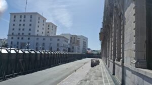 Personal de limpieza se les observó desde temprana hora del pasado sábado y domingo, haciendo limpieza de los alrededores de Palacio, que se encontraron partes de tubos, botes de basura quemados, botellas que sirvieron como proyectiles, y hasta bombas molotov, con fuego, basura, piedras, cartón, palos y todo lo que les aventaron en la marcha las mujeres a los agentes que custodiaban detrás de las vallas metálicas, aun se ven amurallados dichos edificios.