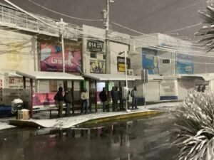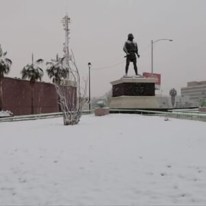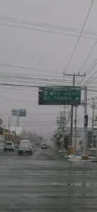 Según la coordinación estatal de Protección civil fueron al menos 10 centímetros los que se registraron en esta ciudad de Chihuahua, el termómetro registra menos dos grados de temperatura.
