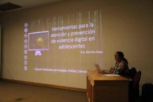 La doctora Martha Facio presentó la charla «Herramientas para la atención y prevención de la salud mental en adolescentes», resultado de un proyecto desarrollado en colaboración con la Comisión para la Ratificación de Toda Forma de Violencia Contra Niños, Niñas y Adolescentes y el Sistema SIPINNA. Donde enfatizó la necesidad de crear estrategias educativas y de prevención con enfoque de género.