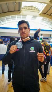 El pugilista Francisco Valles quién representó a la Universidad Autónoma de Chihuahua en la Universiada Aguascalientes 2024 se cuelga la presea de plata en los 91 kilogramos.