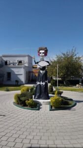 En el centro de su majestuoso patio, se alza una imponente Catrina de Elisa Müller, creada con materiales reciclados y que alcanza más de 6 metros de altura. Esta escultura monumental no solo rinde homenaje a la festividad del Día de Muertos, sino que también aporta un toque contemporáneo a una celebración ancestral.