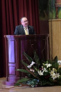 En su intervención, el Rector enfatizó que: “La UACH es un elemento crucial en la historia de Chihuahua” y con 70 años de trayectoria, ha demostrado ser un activo significativo en el desarrollo educativo y social de la entidad, recordó cómo el intelectual chihuahuense Fuentes Mares posicionó a la universidad a nivel nacional y cómo la actual administración trabaja con determinación para sentar las bases de una formación académica de vanguardia.