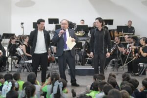 De igual manera, el Rector Rivera Campos hizo hincapié en la presencia de un exalumno del Colegio Riberas, ahora miembro de la Orquesta Sinfónica de la UACH, lo cual inspiró a los jóvenes al mostrarles que es posible alcanzar sus sueños.