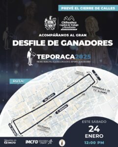 El Gobierno Municipal anuncia el cierre de calles del Centro de la ciudad por el tradicional desfile de los deportistas ganadores del Premio Municipal a la Excelencia en el Deporte, “Teporaca”, este sábado 24 de enero a las 12:00 horas.